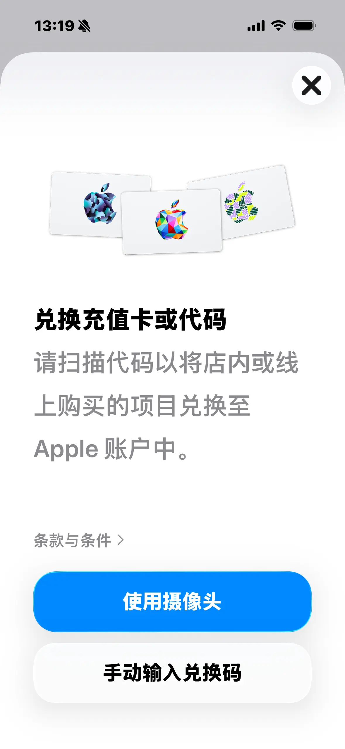 手动输入兑换码
